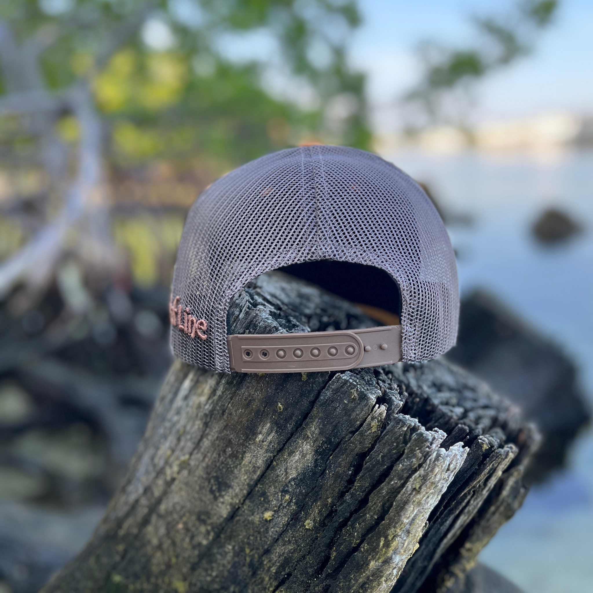 6-panel curved bill snapback and mesh back, with a regal PVC front patch and embroidered logo on mesh.